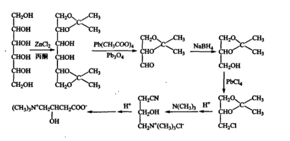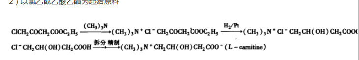 消旋所得的右旋肉碱以前是作废物处理的Giannessi从右旋肉碱出发,经酞化、酸水解、内醋化、水解,再通过离子交换柱,加上McS02C1然后在NatC03水溶液中搅拌可得到左旋肉碱。