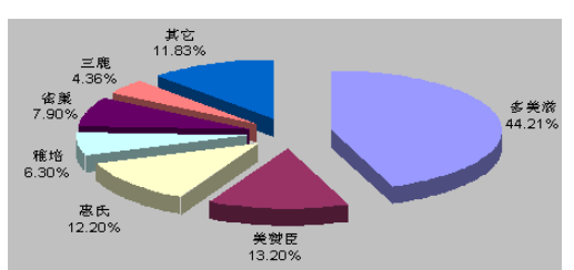 2007年我国婴幼儿奶粉市场品牌占有率情况